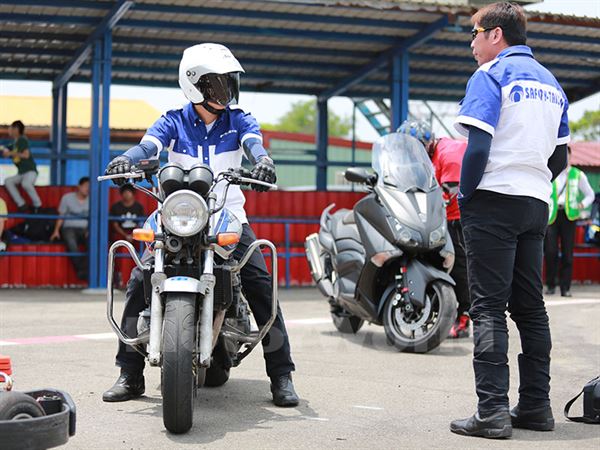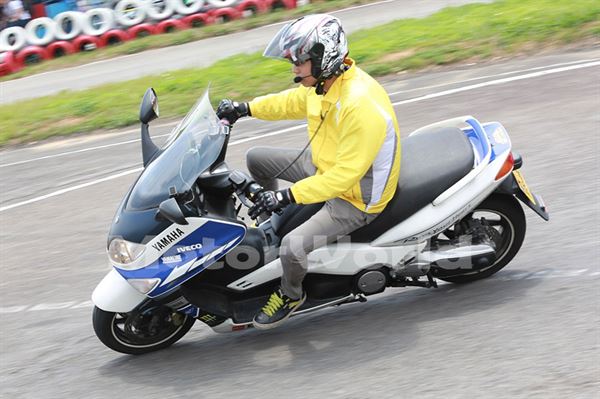 相信一般的煞車讀者們應該都不會有困難才是,然而真正要命的是遇見狀況時的緊急煞車,教練也解說緊急煞車的幾個要領,第一步是立即回油,讓油門回復到不加油的狀態,然後同時操作前後輪煞車,但此時也要注意不要用力過猛而讓輪胎鎖死,反而容易失控,這時候就明白正確且放鬆的騎乘姿勢優點在哪了,另外此時記得車輛要保持直行。各種路況的煞車操作也有些許不同,上坡時以後輪為主、前輪為輔的煞車方式,下坡則相反以前輪為主;至於雙載的情況則是前後輪平均出力會比較好,另外此時梅雨季大家關心的濕滑路面煞車,則是以後輪為主會比較安全。