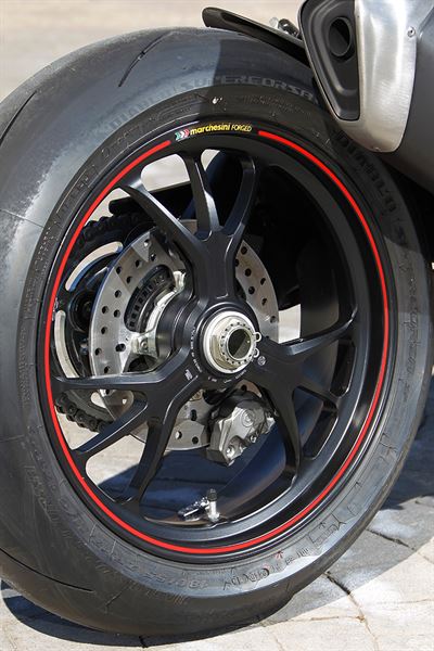 全可調的避震器的作動行程雖長,但車身卻沒有出現令人感到不適的浮仰動作,在低溫路面的狀態下也能夠正確展開對路面的追從,和只配備於SP車款的Pirelli廠Super Corsa SP輪胎的契合度也相當出色。不僅能夠輕易知道輪胎暖開了的程度,而且很好殺彎。在操控性能上比任何一款Ducati的無罩式街車都來的輕快,儘管變成了水冷引擎,卻一點也沒有讓人有笨重的感覺。