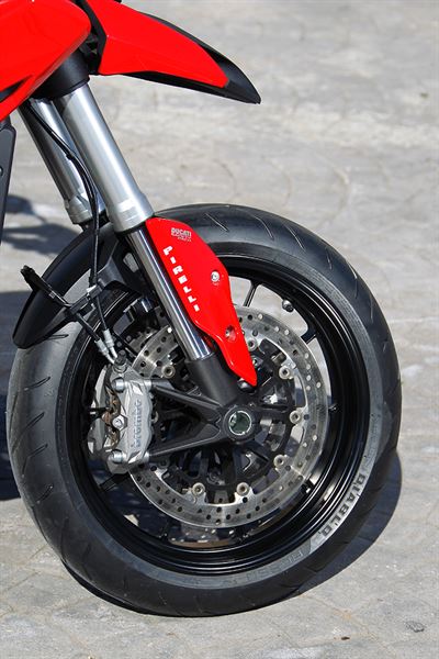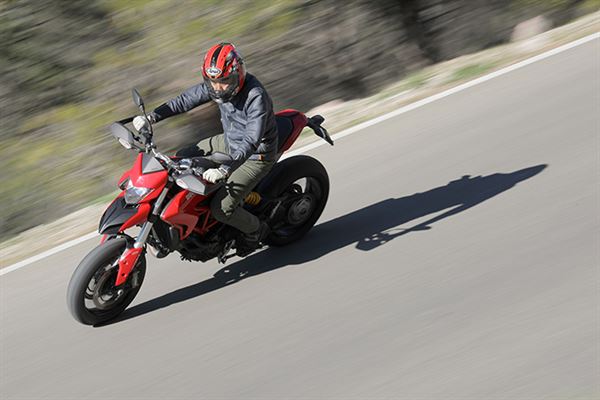 無論使用跑車常見的側掛騎法,還是使用滑胎車常用的出腳過彎,Hypermotard都容許你這麼做,而且兩種騎法都很具殺氣。