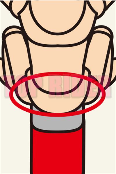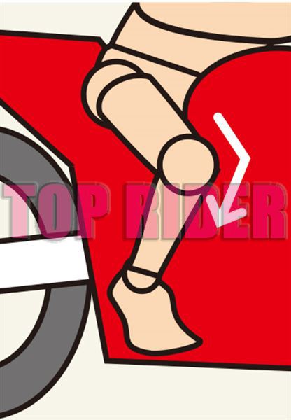 腳踝內側抵著腳踏檔板,一邊注意讓腳尖朝前,這樣一來自然而然地就能讓膝蓋夾住油箱了