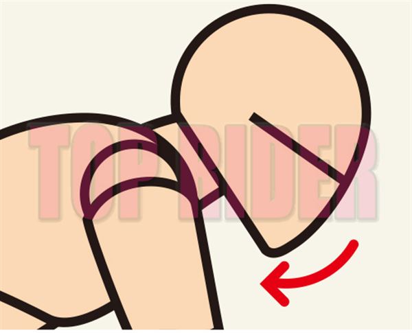 以將肚臍吸入的方式縮小腹,讓脊椎自然彎曲呈現駝背的感覺時就對了,彎曲腰部讓上半身貼在油箱上的方式則是NG姿勢