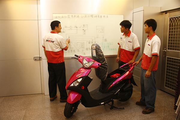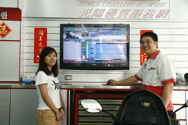 光陽體系的推陳出新,店內也引進了許多新型設備服務顧客,像是拆胎機、升降機等等,為了就是區別於一般老舊的機車行陰沉骯髒的感覺,讓客人感覺到溫馨親切的服務,還有新系統的引進,記錄著每個顧客的基本資料、維修時間與零件,不會因為顧客忙碌忘記自己上次保養的時間,還有貼心的提醒服務,時間一到就會以電話簡訊通知顧客該回廠保養,可見光陽的用心及貼心。
