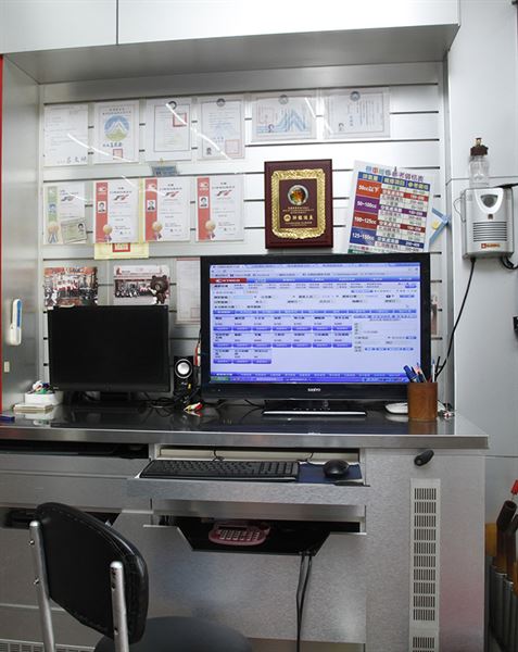 店內的排氣檢驗設備井然有序,不會因為工具太多而雜亂