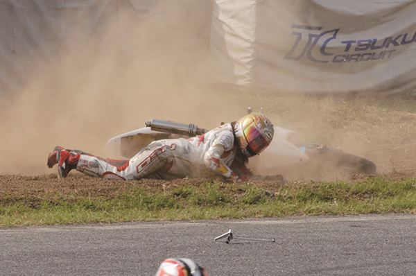 在經過基本動作的重點教學之後,自然就要讓各位選手下場試車,由MFJ賽會提供的統一規格Honda CBR150擔任選手們的比賽車,不過由於車輛不能做任何的調整,兩位選手在激烈練習時,都不幸轉倒,劉君眉選手甚至發生嚴重HighSide,所幸並無大礙,不過坂田教練也藉此機會給兩位選手機會教育,讓車手更加的了解為什麼會轉倒。結束了全天的練習之後,教練還幫所有選手做課後輔導,以賽道地圖進行詳細的解說,讓榮哥大嘆:『果然是世界冠軍,連放屁都是香的』。這次的練習讓兩位選手在賽道技巧上進步許多,更知道了以往賽道騎乘中從沒有體會過的技巧,期待兩位女選手的實力能更上層樓。