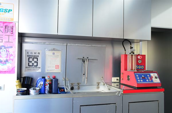 有條不紊的工作檯及噴油嘴清洗機,打破傳統車行的印象