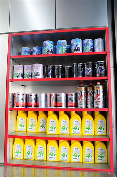 店內架上擺放著齊全的原廠機油,能提供各項需求
