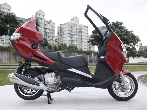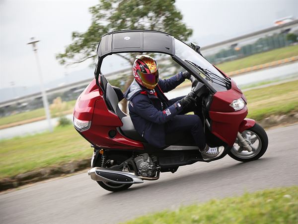 在全新的AD2 400上面其實可以看到許多汽車的影子,不只有可以遮風避雨的頂棚,還有大片的擋風玻璃以及雨刷,後箱更是有大容量的置物空間。這些創新的設計完全顛覆了我們對機車只是近距離代步的傳統觀念。從外觀上看起來,AD2 400完美的結合了汽車與機車的優點,而實際上它的表現也沒有辜負大家的期待。在頂棚拉起來的情況,就宛如置身於小型汽車當中達到完美的遮風避雨。