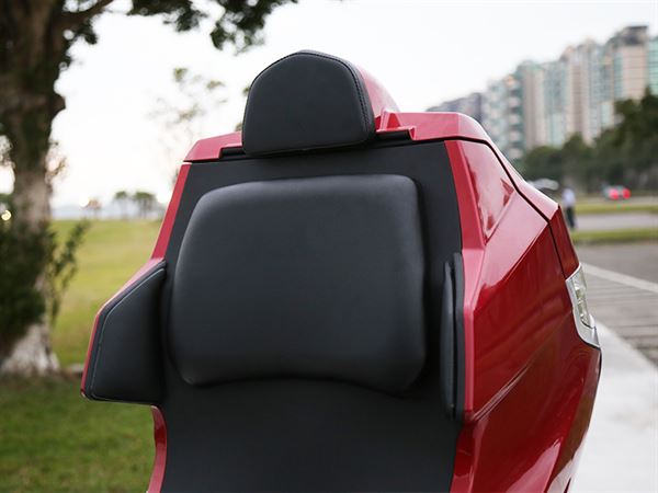 前端配置的雨刷跟汽車比較起來並無差別,不只能根據下雨天的情況調整快慢更有雨刷功能提供了良好的視線,在後方配置了超大的置物箱,裡頭的置物空間大約相當於兩個SH-39。在頂棚拉起的情況,想塞進你的行李加兩頂安全帽絕對是綽綽有餘,可想而知這個置物箱的大小讓大家為之驚艷。除此之外,車廠還貼心的在兩側設計了出風口避免碩大的擋風鏡造成騎士過於悶熱。座高的部分也僅僅只有700mm設計的相當親民,就算是個子嬌小的女騎士也能毫無負擔的駕馭。原廠配置的座位不論是前座還是後座都相當的寬敞舒適,就算是長途騎乘也不會感到不適。