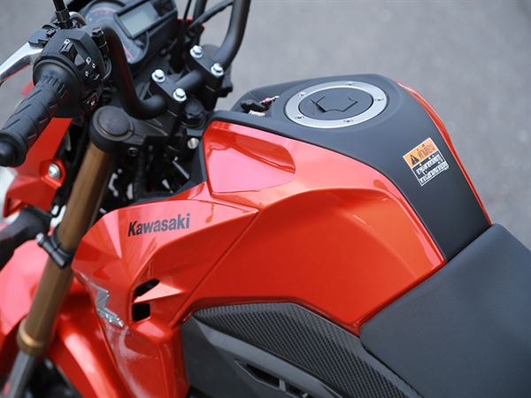 Z125外型上延續了自家Z車系,從銳利的頭燈設定、精美流線油箱、甚至是與自家Z800相似的尾燈,都能看出它印上家族的血統,有趣的是,Z125多層次油箱,即使倒車或是輕微的擦撞,也不會傷及油箱本身,藉由分件設定,油箱也能達到十分出色的外型,在搖臂上面,Z125使用了具備複合功能的鏈條蓋,不但具備內土除的功效,也讓搖臂看起來更加兇狠,卡夢的紋路使它增添幾分精緻感,即使搭配小輪徑的配置,Z125看起來也不失幾分威風,放置Z125下方的下置式排氣管與「ER-6N」相同,精實的外型同時也給予了更多靈活空間,其聲浪則與自家Z系相似,高亢帶有穩重的紮實感,既不高調,也能不失本色。