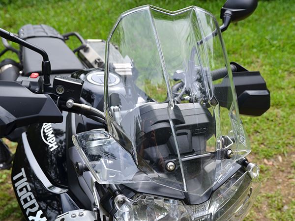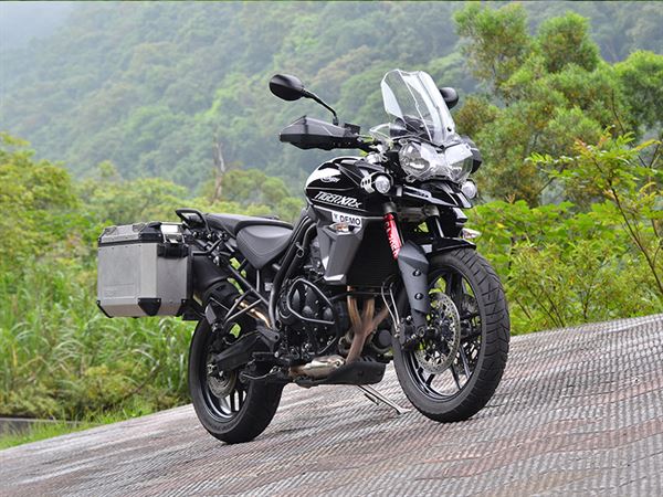 從外型來看Tiger 800 XRx倒像是跨界多功能的休旅車款,偏向街車的騎姿定位,訴求長途休旅的騎乘感受,也因為這樣Tiger 800也搭載著巡航系統,因應ADV車種的個性,也加掛了霧燈的設計,前方風鏡可以手動調整,在行車資訊方面“X”車型更添加了像是行程時間、平均車速、平均油耗、瞬間油耗等,功能相當豐富,除此之外長途騎乘具行力也相當重要,搭載19L的油箱大小,油耗表現也比上一代來的出色,而ADV車種也不能忽略裝載能力,當天商借來的車輛側箱為選購商品,但在台灣也能安裝到Triumph原廠的鋁合金側箱,裝上後除了裝載能力大增,粗曠的休旅風格也嶄露無遺。