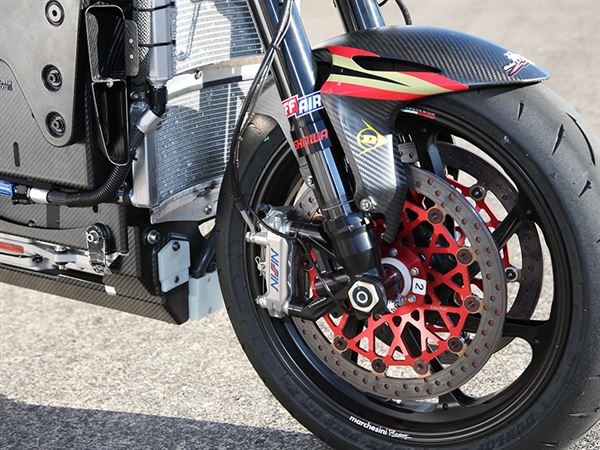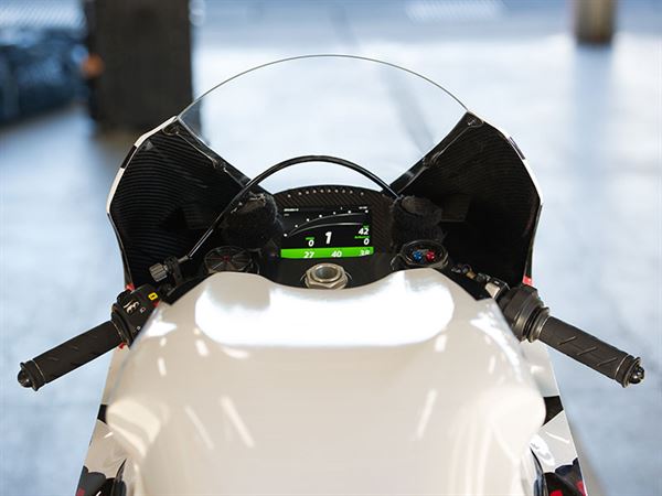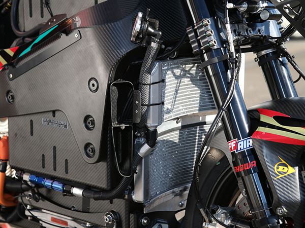 初次跨上MUGEN神電的印象就是「怎麼這麼順手!」,跟平常搭載引擎的賽車簡直沒什麼兩樣,唯一差別就是,神電搭載的是410V油冷式三相IPM/內部永磁無刷直流馬達而已。不過握把的部分設置較前端些,是相當細膩的設計,畢竟騎乘賽車的姿勢就是讓騎士與車身能呈現一直線的狀態,這樣才能有更好的流線。