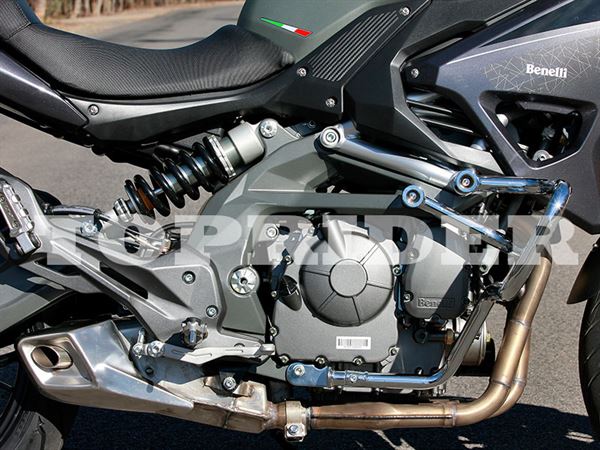 動力配置與R系列相同的BN600GT,搭載著義大利Michelotti & Co.研發的傳統16閥門四缸引擎,不過沒有平衡軸。直列四缸引擎的缸徑和行程為65 x 45.2㎜,排氣量為600㏄。根據Supersport賽事表示,GT版其實是可以轉到16,000rpm,不過BENELLI則設定紅線為12,000rpm,比R系列的多了500rpm。緊湊的動力壓縮比為11.3:1,雙頂置凸輪軸,搭配六速變速器,濕式離合器。GT版的車架採用與R系列的相同是經過義大利工程師和錢江集團雙方討論後所做的決定,利用引擎當作受壓點,再接上雙杠底盤和鋁製搖臂。值得注意的是中國製的鋁製鑄件品質是相當高的,完全可以跟歐美或日本的比。就連車身塗裝的品質也不差,另外在塑膠配件和打擋上面來說,也比R系列的好,感覺是有提升塑膠材質的品質。坐墊設計的相當舒適且寬敞,而後座握把設計不單只是握把,還是行李箱的固定點。只能說,從小細節來看BN600GT雖然是在中國製造的,但品質上面絕對不簡陋。