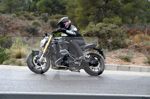 BMW新一代的水冷雙缸引擎其實在兩年前就一直有傳聞要放在R1200R上,直到去年R1200RT搭載後,全新改款的R1200R才緊跟在後頭。使用氣冷系統的舊版系列自2006年推出R1150R以來,BMW已售出超過50,000台車了,可見這系列車款是相當成功的作品,同時也是BMW最關鍵的盈利來源。原本期待會有RS版,不過在Benidorm的記者會上BMW並沒有表示會推出R1200R的RS,這點有點令人失望。試乘R1200R的地點在西班牙當地最熱門的觀光景點Mediterranean,這裡夏天總是聚集許多觀光客前來曬日光浴,冬天的氣溫則是偏溫和帶點雨。190km的試乘體驗大多都在Costa Blanca的山丘上,R1200R也是以全車配備武裝後開始試乘,只不過當天因稍早的降雨讓地面尚未乾燥,通常遇到這種濕地情況都會不自覺地擔心操控性能是否受到影響,不過,這才是測試R1200R的最佳時刻。上路後,我萬萬沒想到R1200R是如此的穩重,在濕地駕馭也相當平順,這個雙缸引擎給我的感覺就是相當的安全穩重,整個過程彷彿就像是它在告訴我無論什麼狀況發生它都能保護我的安危,此時剛剛無謂的擔憂也就在此消失了。