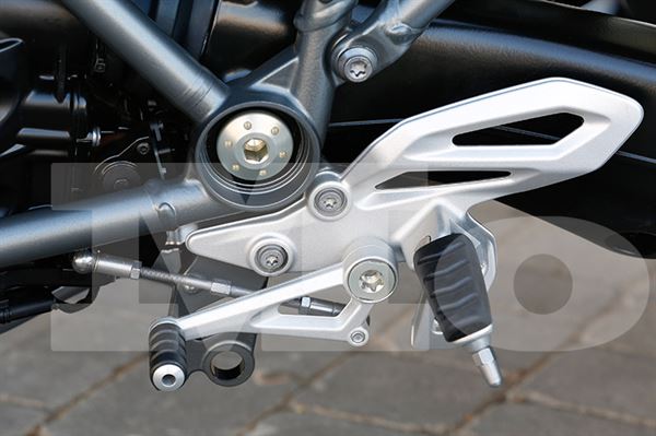 買車最重要的除了造型好看外,再來就是引擎性能部分了。101×73mm的水平對臥雙缸引擎一直都是BMW在自家引擎上的經典象徵之一,水平向外延伸的巨大引擎進氣箱更是突顯出R1200R擁有極佳的動力表現和獨特風格。BMW採用對臥雙缸引擎算是近年來車款定位上最大的突破,同時R1200R也是今年推出的車款中的主角之一。而對臥雙缸引擎能帶來多大的動力呢?數據顯示轉速達7,750rpm時已有125hp的動力,而扭力則在轉速達6,500rpm時有12.75kg-m的表現。比較起來,舊版的R1200R馬力也不過才109hp,扭力則是11.73kg-m,這對引擎來說是相當大的升級。
