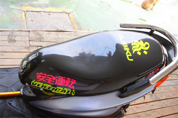 色澤十足的客製正卡夢坐墊在製作上可費了不少時間