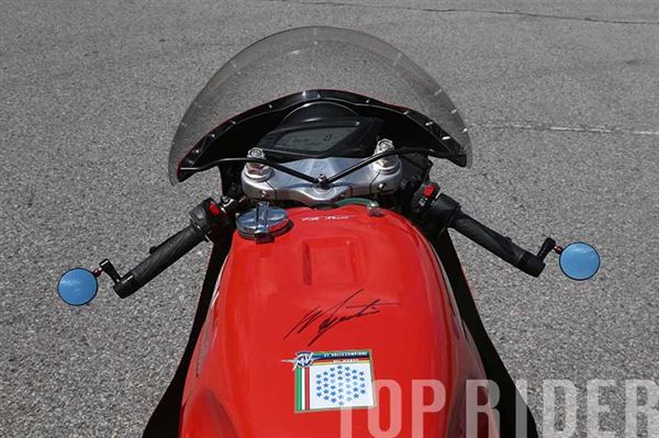 隨著科技的發達,二輪車也慢慢的從複雜的手動發動進階到一顆按念就能輕鬆發動車子的階段了。另外,引擎在低轉時的表現非常棒,上路後轉速達3,000rpm就能立即感受到引擎輸出的扭力,而7,000rpm時扭力達到最顛峰。如果喜歡拉轉至紅線區的人,不妨試試13,000rpm時排氣管所傳來的嘶吼聲,真的非常動聽。騎著MAGNI MV Filorosso回憶著早期的GP Racer,有種莫名的感動,當然這台車在軟體上面還有待加強,像是趕快把循跡和ABS這種基本配備給裝上吧!不然這台車真的是台很棒的復古現代仿賽車。最後我只能說…沒有一台復古車能夠比這台車做得更完美了。