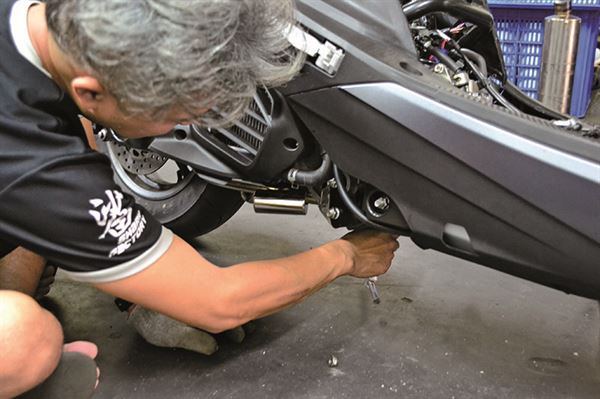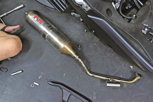 排氣管的改裝自然是選用M-Power自家的排氣管,這支全新的手工管除了是專為六代勁戰所開發設計,這次還加裝了M-Power排氣扭力系統。由於該裝置尚未量產上市,價格及正式名稱未定,如果今年在賽場上能有不錯的性能表現,預計年初就能看到該商品正式販售,屆時大家又有一項好用且可以升級性能的小物可供改裝。