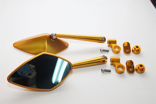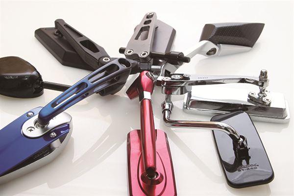 現在,大多數的改裝後視鏡都是採用鋁合金製成,再來才是鐵質、塑膠材質。有些高級後視鏡,還採用CNC加工,外型雕琢得十分細膩,但這種大多價格不菲,甚至要價3,000元以上。為了滿足消費者的期望,廠商也無所不用其極,電鍍、碳纖維、銳角、復古造型等,全都用上了。
