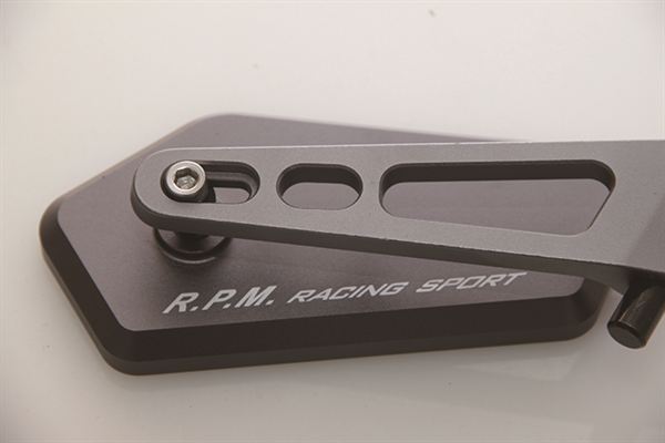 全採用CNC材質加工的PRM後視鏡,連桿部份採取鏤空造型,既不會失去吸震能力,也可以多段調節,可視範圍十分寬廣。