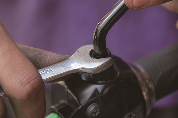 後視鏡是使用本體的長牙螺絲,以及一顆螺母來固定。拆裝的方法非常簡單,唯一要注意的就是調整時後視鏡的角度。