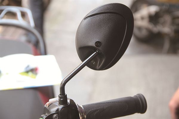採用光學藍鏡為鏡面的JS-POP後視鏡,外觀經過烤漆可以防鏽,也可防眩光,讓騎乘更安心,不過造型上較迷你。