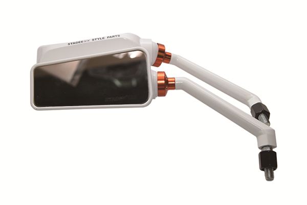 外觀烤漆成白色亮漆,也能防止產品生鏽,同為復古造型的後視鏡。