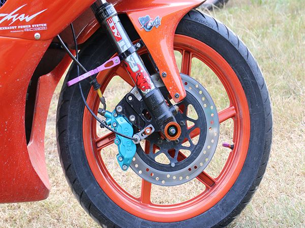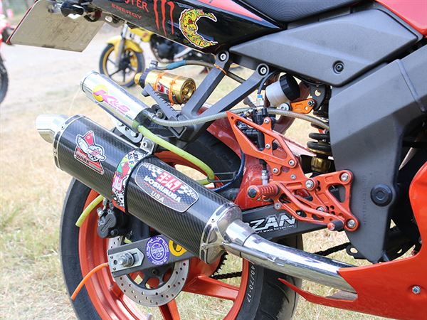 酷龍是目前台灣市面上唯一一台具有仿賽整流罩的國產檔車,車主將整流罩更換成類CBR樣式車罩,讓原本仿賽酷龍非常高突的風鏡下降,而換成類CBR樣式車罩之後,使原本頭尾一樣高的線條改變,讓整體的比例更加的賽車化,而呈現的視覺結果也相當成功,移到三角台下的分離把手降低了把手的高度讓車頭視覺感更低趴,配上RSF全組後移腳踏也讓騎士整體的騎姿更接近仿賽車的風格,配上其他升級的制動、排氣以及懸吊系統讓整車的改裝程度更加到位。