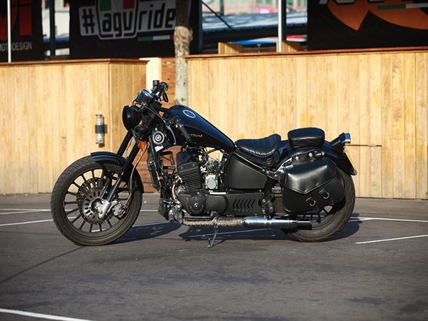 HART FORD在台灣推出多台個性檔車與紅黃牌國產檔車,攻占重車市場。這次帶來哈特佛推出的黃牌嬉皮車改裝FIRE-X320,車主將原先的嬉皮風格結合街頭要素,使用兼具復古風格的柵欄燈罩、腳踏前移、較低的手把,呈現如同哈雷XG750的復古街頭風格。並將原本的椅墊切成兩半,換上特製土除與復古風格的分離式座椅,戰鬥氣勢十足。另外車主還特別訂製手工白鐵管,並選用魚雷管造型,重現英倫復古車特色。