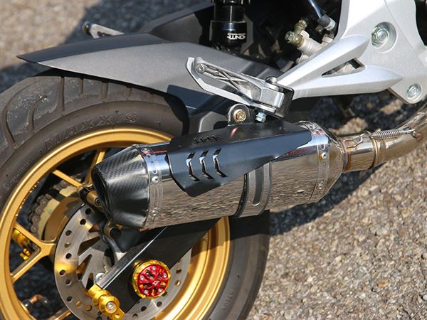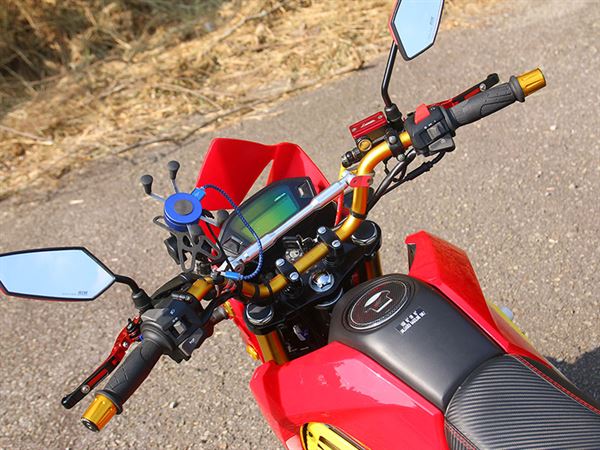 CPI的MX150是款能展現獨特自我風格的國產小輪徑檔車,擁有極高的改裝自由度讓台灣其是趨之若鶩。這台MX150已鮮紅的車身塗裝搭配許多精緻部品,在許多細節處上相當用心。最讓人印象深刻的就是那充滿突進氣息的頭燈罩,搭配以金色為副車色系的車體部品,更顯整台車的立體感。多段連接的造型白鐵排氣管帶來的熱血聲浪,也替這台MX150增色不少。