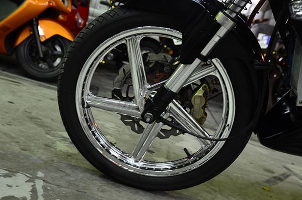 風火輪套件、黑之翼前叉裝飾彈簧、追風二代前土除、GP鋁合金三角台、X-Hot液晶儀表、遠近燈魚眼+光圈、EN油箱、GP 可調式防甩頭、LAT KTR下擾流、GP美式油冷排、Xtreet尾殼總成