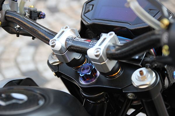 為了能充分發揮出車子的動力表現,換上聲線飽滿的頂級Over鈦合金排氣管,不但增加輸出力道,也增添帥氣的外觀。在後懸吊方面選用了K-TECH後避震,來至英國原裝,可以征服任何地形,配合上Brembo 大螃蟹卡鉗,讓車子能在更安全的條件下享受極速快感。在外型上也具有獨特風格,LED魚眼搭配卡夢車頭燈罩,全車也使用POSH鈦合金螺絲,使車子在眾多車款中別樹一幟。