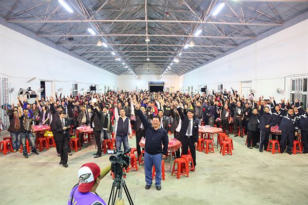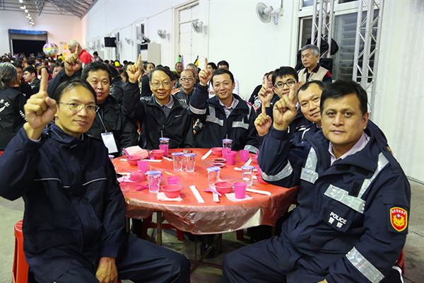 圖中比著一字手勢的男人便是這次整場活動的總籌畫—趙哥,一字手勢代表著團結、一起來的意思