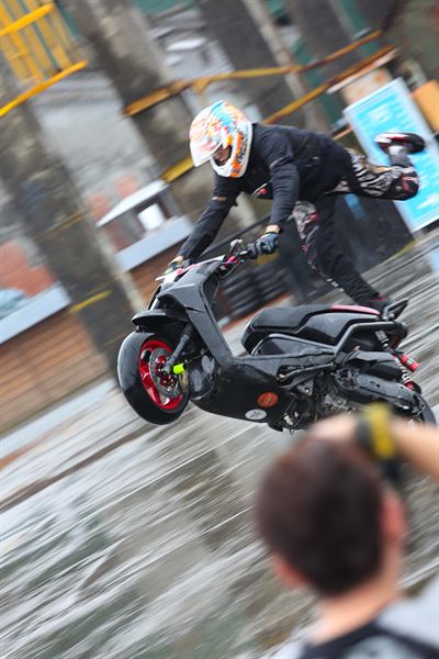 場外有帥氣的機車花式表演,即使下雨依然表現精彩