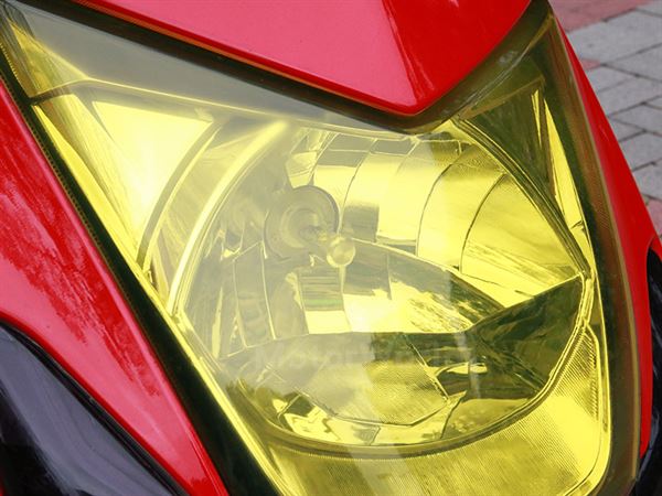 (黃光燈膜貼覆加上LED燈泡的照明效果加持,夜間騎乘安全大大提升)
