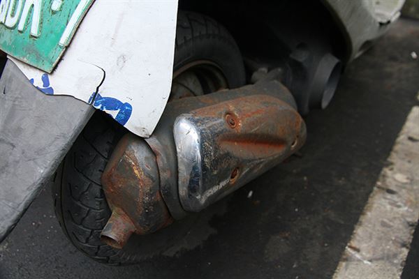 第二代橢圓扁管式排氣管,隔熱片設計上就相當有誠意,改為兩片疊放設計。