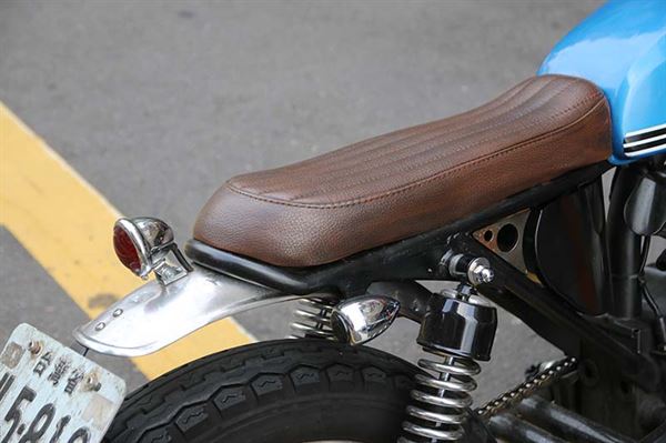 改裝明細:客製化手工皮製坐墊,復古圓形造型大燈,手工鋼管搖臂,手工底排排氣管,手工空濾盒保護外蓋,客製化手工烤漆油箱,微笑寬手把,客製化牌架。