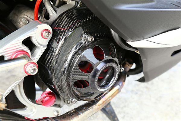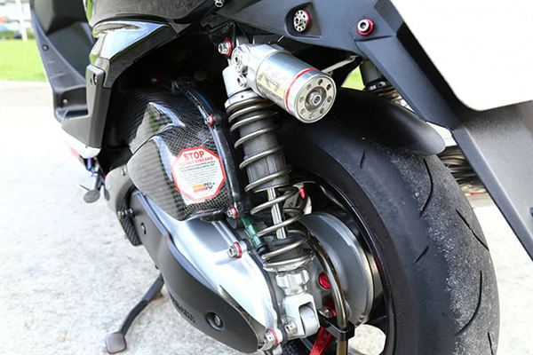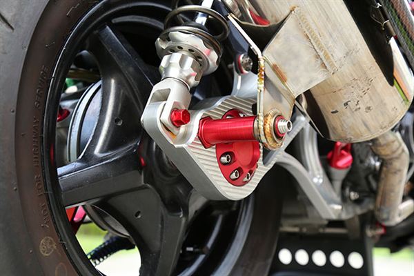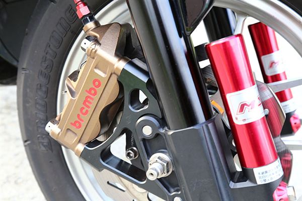 MSP MDF2前叉、Brembo對四幅卡、Galfer碟盤、Shark Factory鍛造前輪框、黃蜂排氣管、K1-H/L避震器、NCY培林式煞車搖臂、傑能排骨