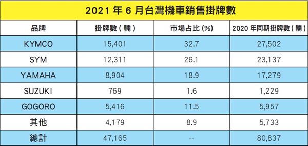 2021年6月台灣機車銷售掛牌數