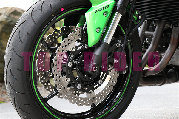 前雙300mm浮動碟配上雙Nissin對四卡鉗制動效果出眾,ABS的介入時機和反應也相當讓人安心