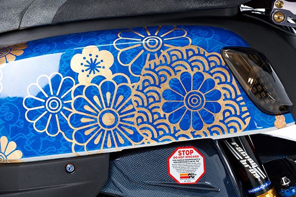 以全車金蔥為底,內藏200隻猴子浮水印,最後以浮世繪花系金箔做最後點綴成型,外觀亮麗無比