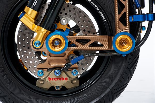 車輛上頭的三片碟盤所配的卡鉗全是Brembo,CNC的剛性以及輕量化程度十分可觀。