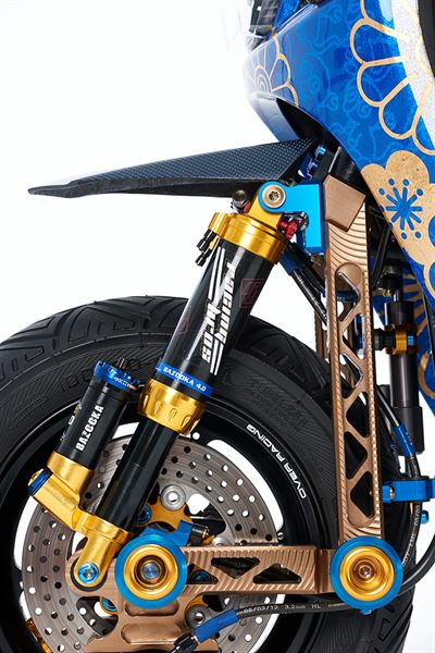 這特殊的直立式六連桿防甩頭,也是出自鐵猴之手,為了符合這種特殊的懸吊所開發的專屬多連桿配置