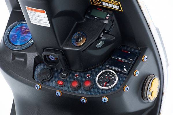 這組置物箱電系整合系統也是它的賣點之一,包含轉速錶、油溫錶、電壓錶、缸溫錶、車充、燈控開關、駐車燈