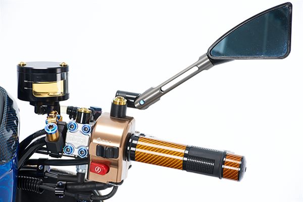 RIZOMA水族箱油杯、CNC組合式油門座、CNC開關座、CNC緞造後視鏡等配備