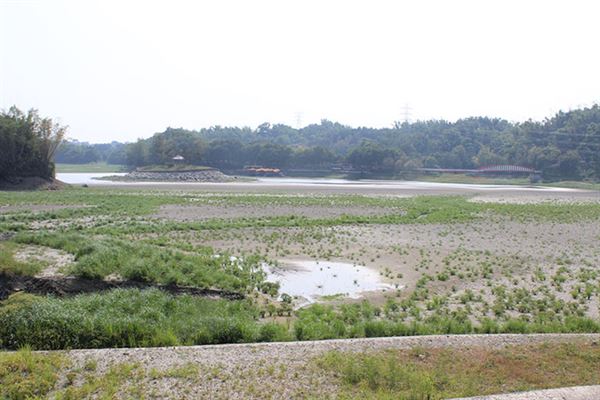 尖山埤水庫將水放空清淤,所以不見碧波萬頃,形成難得一見的「空庫」景觀。