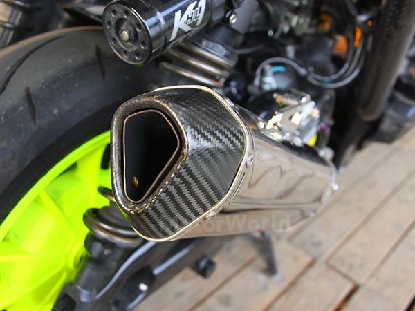 (亮眼的白鐵管以及Carbon材質鯉魚嘴,讓全車的改裝更具整體性)