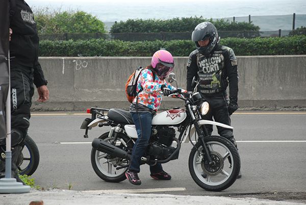 騎檔車的女生也變多了,不過這位女騎士好像還是初學啊