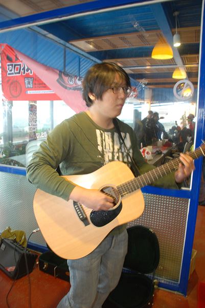 這位車友背著吉他遠道而來,為車友們帶來熱鬧的伴奏音樂
