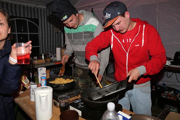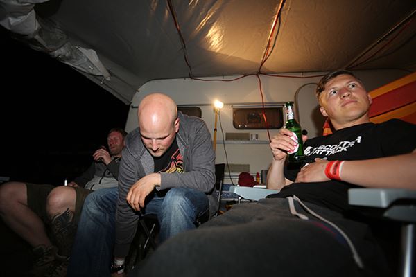由於是長達四天的活動,所以要有過夜的準備,主辦單位準備了很多帳篷,也有大型野炊工具來料理三餐。當然光是靠主辦單位提供的帳棚絕對是不夠用的,所以很多車友是開著露營車,或是把貨車改裝到可以睡人的程度再過來。第一天晚上,眾車友就在抽菸喝酒聊天打鬧中度過。