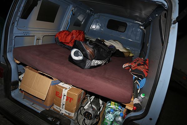 有人在貨車上擺張床墊就可以睡了